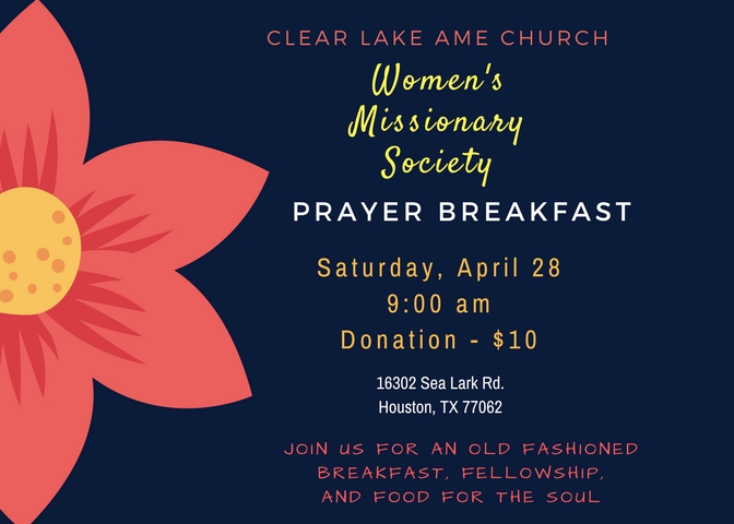 Join us Saturday, April 28 for the Women’s Missionary Society’s Prayer Breakfast!